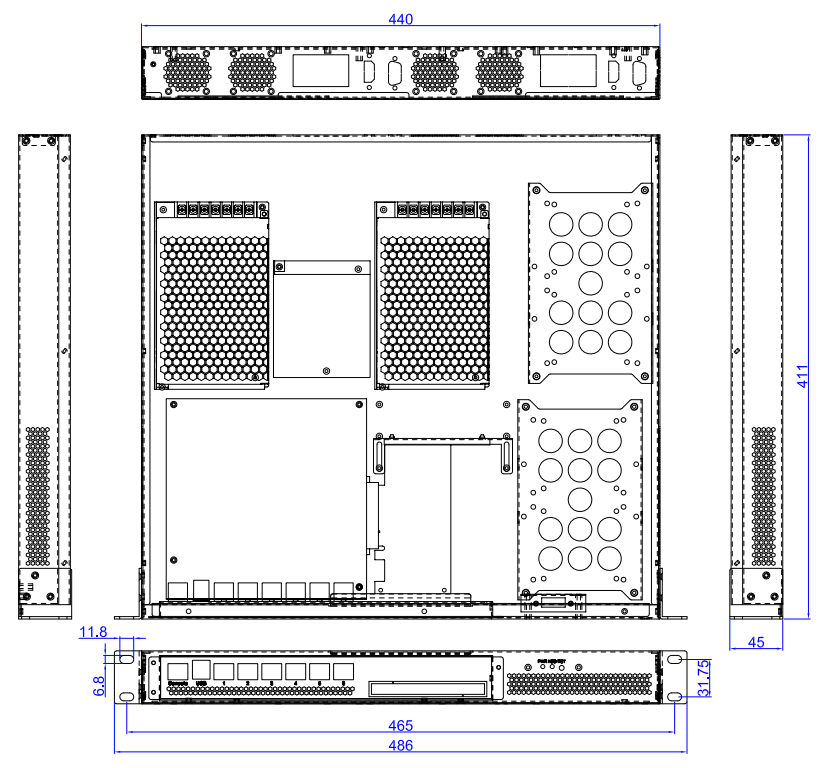 2 x 4020系统风扇, 1 x 电源开关, 1 x VGA接口 |