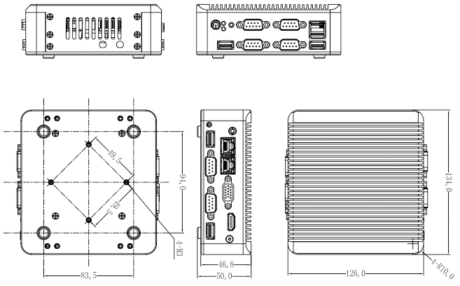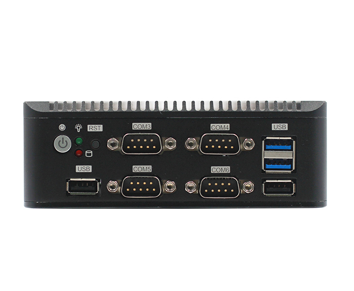 1*HDMI 2*USB3.0 4*USB2.0 2*LAN 6*COM(COM1,2可通过跳帽和Bioses设置选择为RS232或RS485,RS485支持自动流向控制,COM3,COM4,COM5,COM6为RS232) 1*快速开机按钮带指示灯1*复位按钮 1*DC 1*电源指示灯 1*硬盘指示灯 |