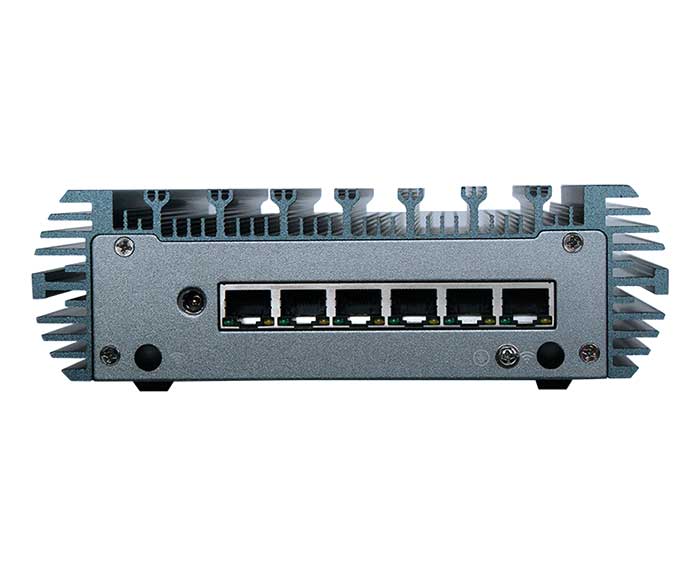 ◆ All-aluminum body, fanless and cable-free design; ◆ Support Alder Lake-N series processors; ◆ 1 x DDR5 SO-DIMM, total maximum 16GB; ◆ HDMI display, RS232 CONSOLE, TPM2.0 optional; ◆ 6 x 2.5G networks, B-Key, E-Key; ◆ M.2 2280 SATA for option; ◆ DC 12-19V; ◆ Size: 178 x 121 x 55 mm;