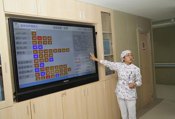 护理站电子白板系统,以触控屏幕结合工业计算机或触控一体机的方式,可显示住院病人各种信息,这块“电子白板”能与医生工作站及病房的信息完全互动互联,将护理电子病历、移动护理管理、护理呼叫管理以及护理信息发布管理集成。