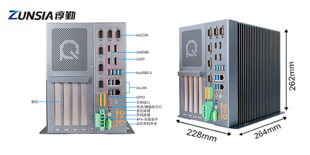 Q-BOX-A1蘑菇视频APP黄机可搭载Intel 12/13/14代-S系列处理器,带有2个DDR5 SO-DIMM内存插槽,最大支持64GB;存储方面1个M.2 2280插槽,2个SATA3.0接口,1个2.5寸HDD接口;显示方面有2个HDMI接口和2个DP接口;此外还有凤凰端子电源接口、8个USB接口、6个COM口、TPM等扩展接口;支持运行Windows和Linux系统,可在-20℃至+60℃的宽温环境下全天候工作。